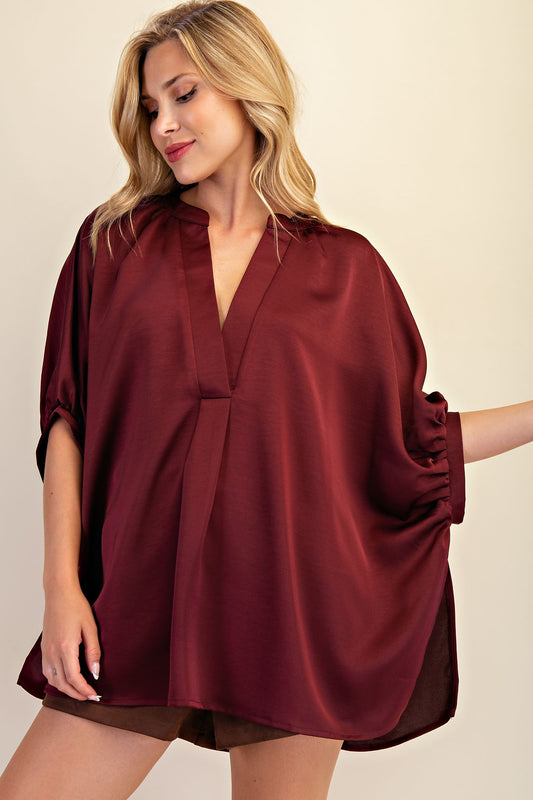 V-neck Placket Oversized Satin Top GT9352