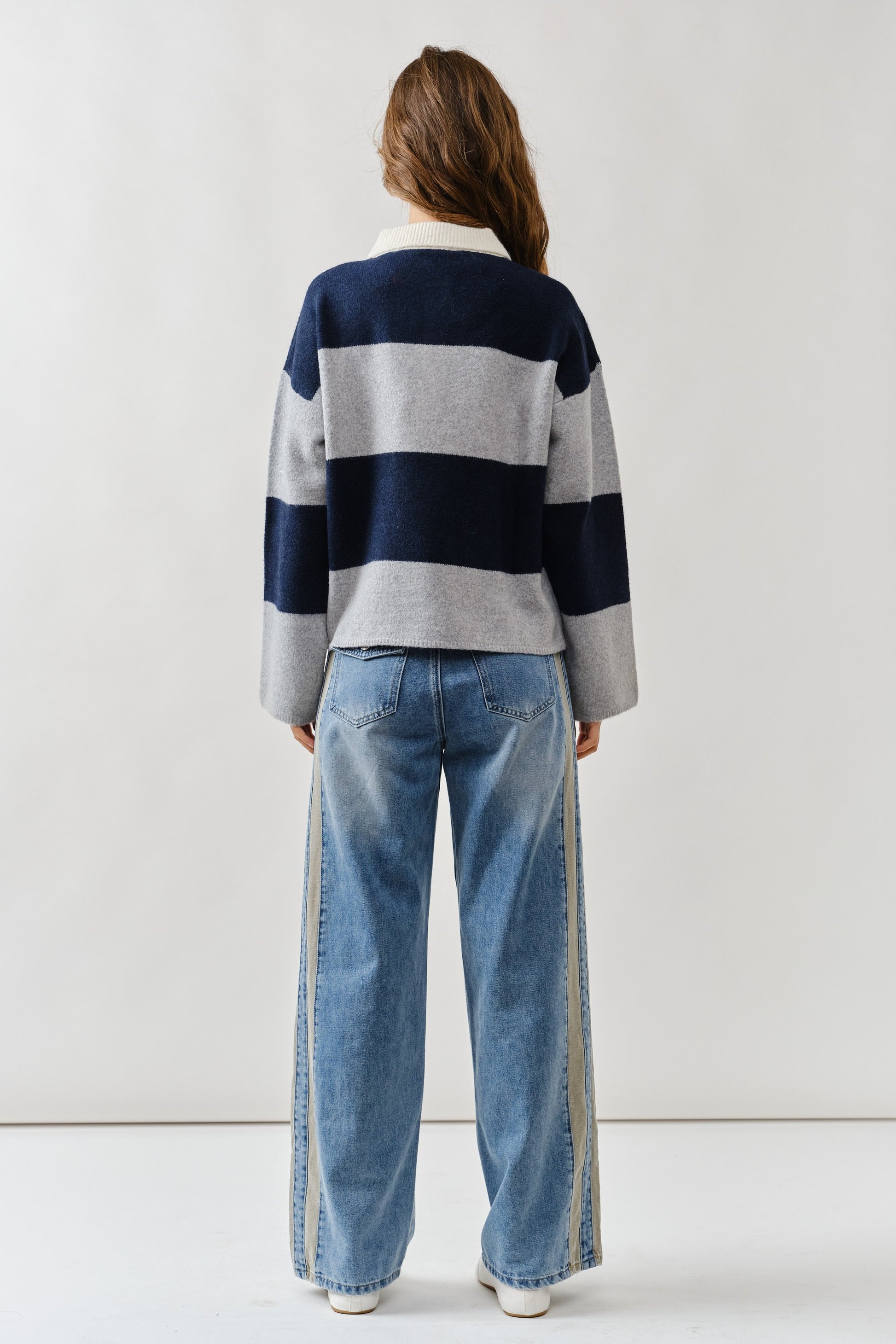 Elevate your denim game with these Contrast Line Detail Slouchy Straight Jeans. The relaxed silhouette pairs effortlessly with any top, while the vintage blue wash and striking double-line side stripes deliver instant edge and personality. Mid-rise styling flatters your figure, and the slouchy straight-leg cut moves with you all day. Whether you're dressing up or down, these jeans bring that coveted retro-modern vibe that never goes out of style. A wardrobe essential that works as hard as you do.