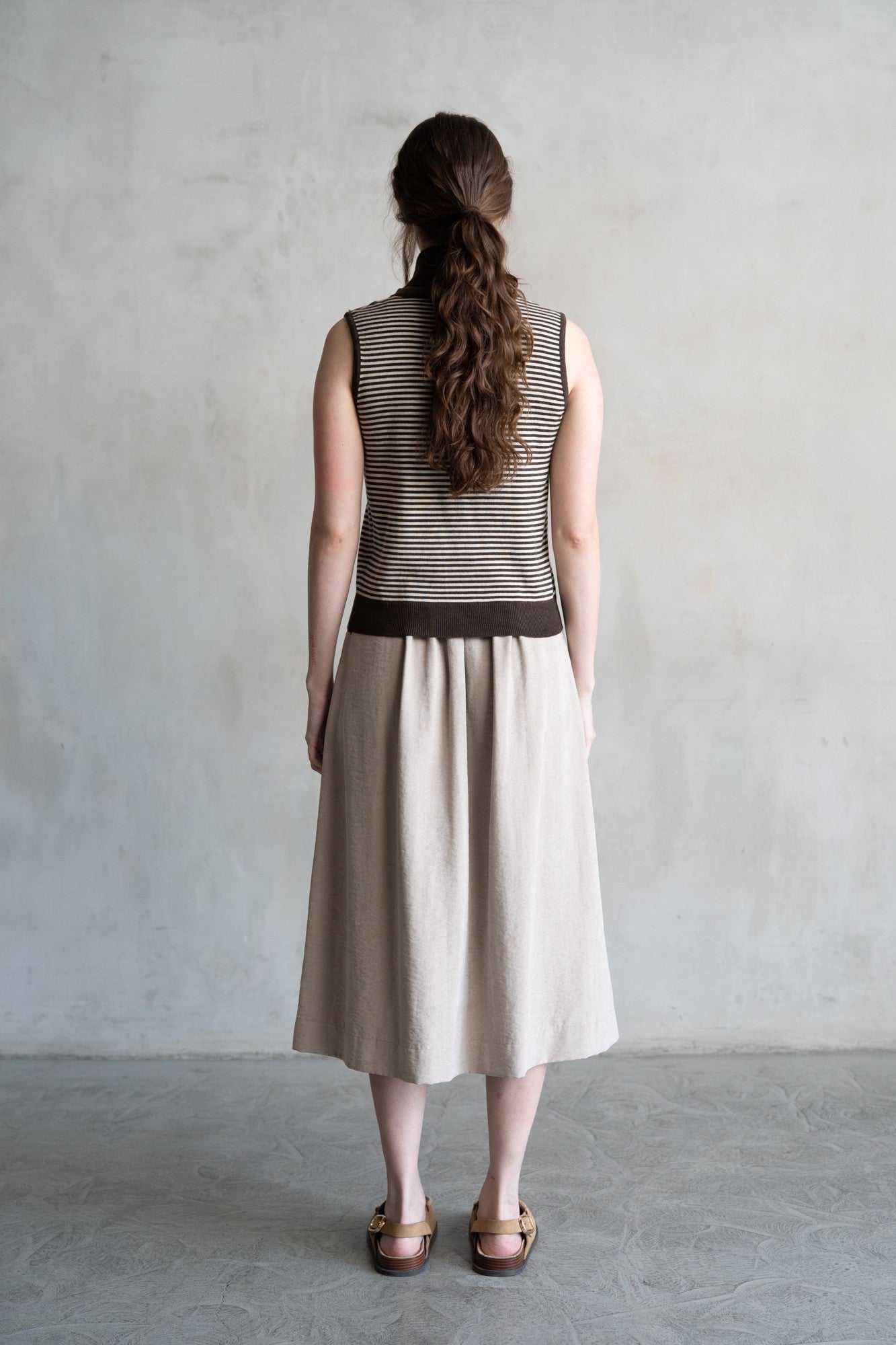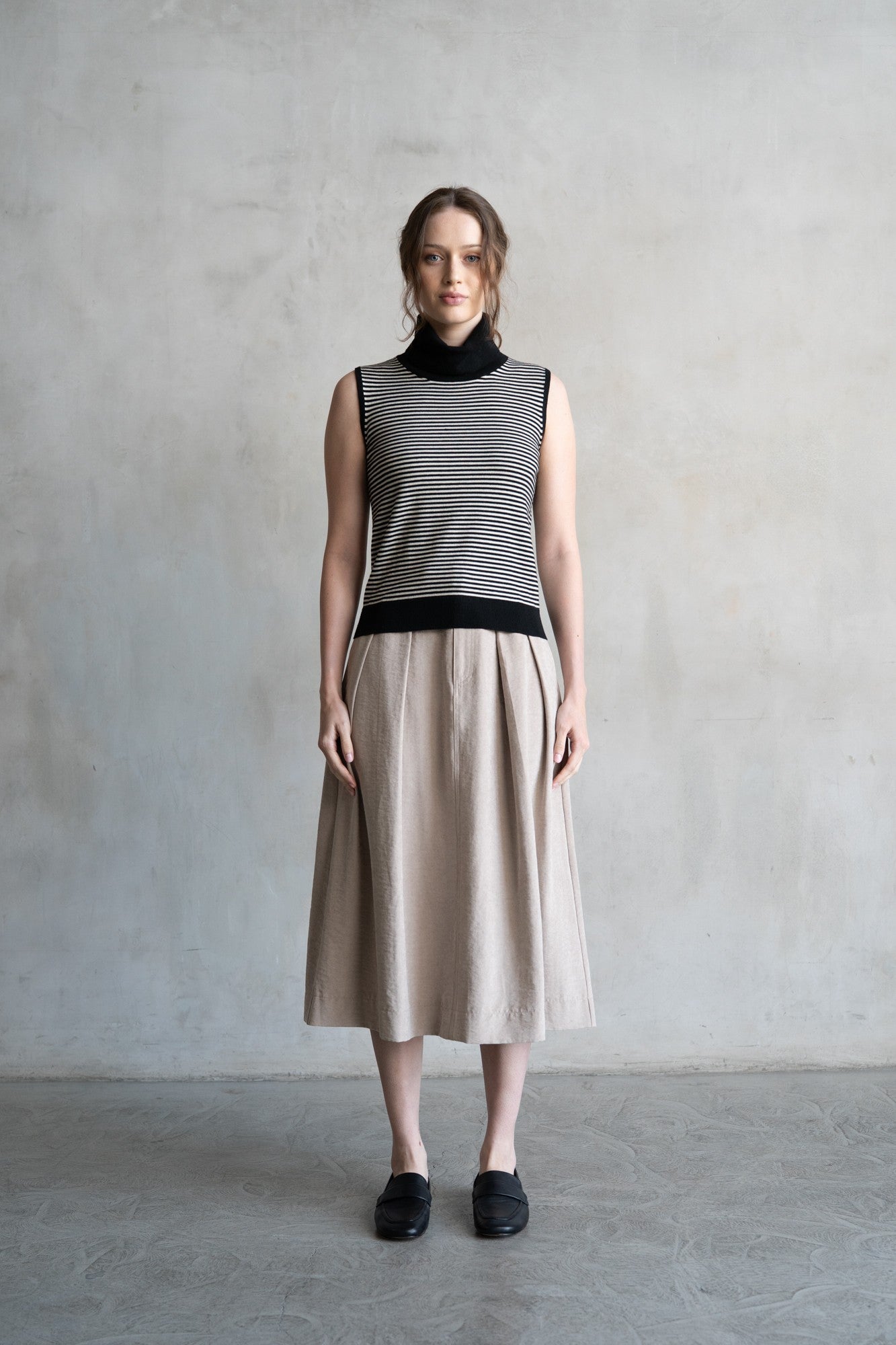 Experience effortless style with this Striped Turtle Neck Sweater Vest. Crafted from a soft ribbed knit blend, it features classic horizontal stripes and a cozy foldover turtleneck for a polished look. The sleeveless design makes it perfect for layering or wearing on warmer days, while the fitted silhouette with stretch flatters your shape comfortably. Finished with a ribbed hem, this vest combines timeless appeal and versatile wearability for any occasion.