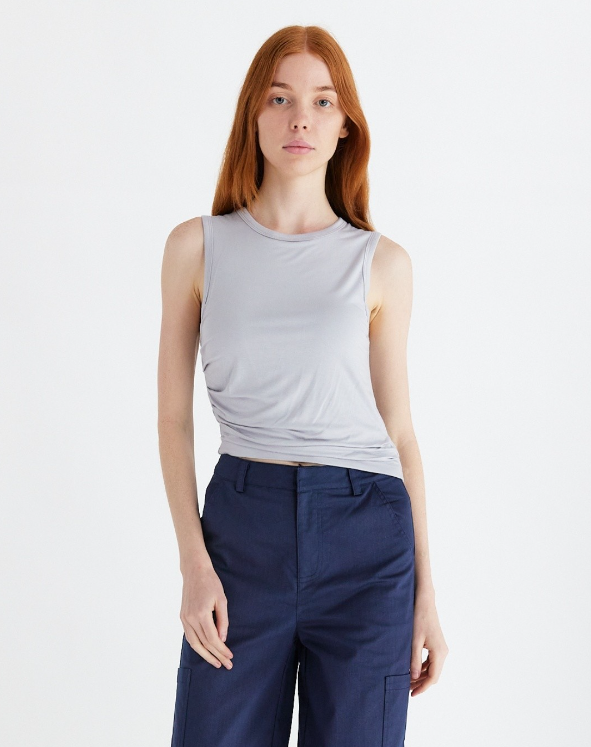 The Harlow Top is an elevated basic piece that you can wear all year long. It's crafted from a soft-knit jersey fabrication that allows for added draping. Features a sleeveless, doubly-ply bodice with added side-ruching detail to hug your body in the right ways.