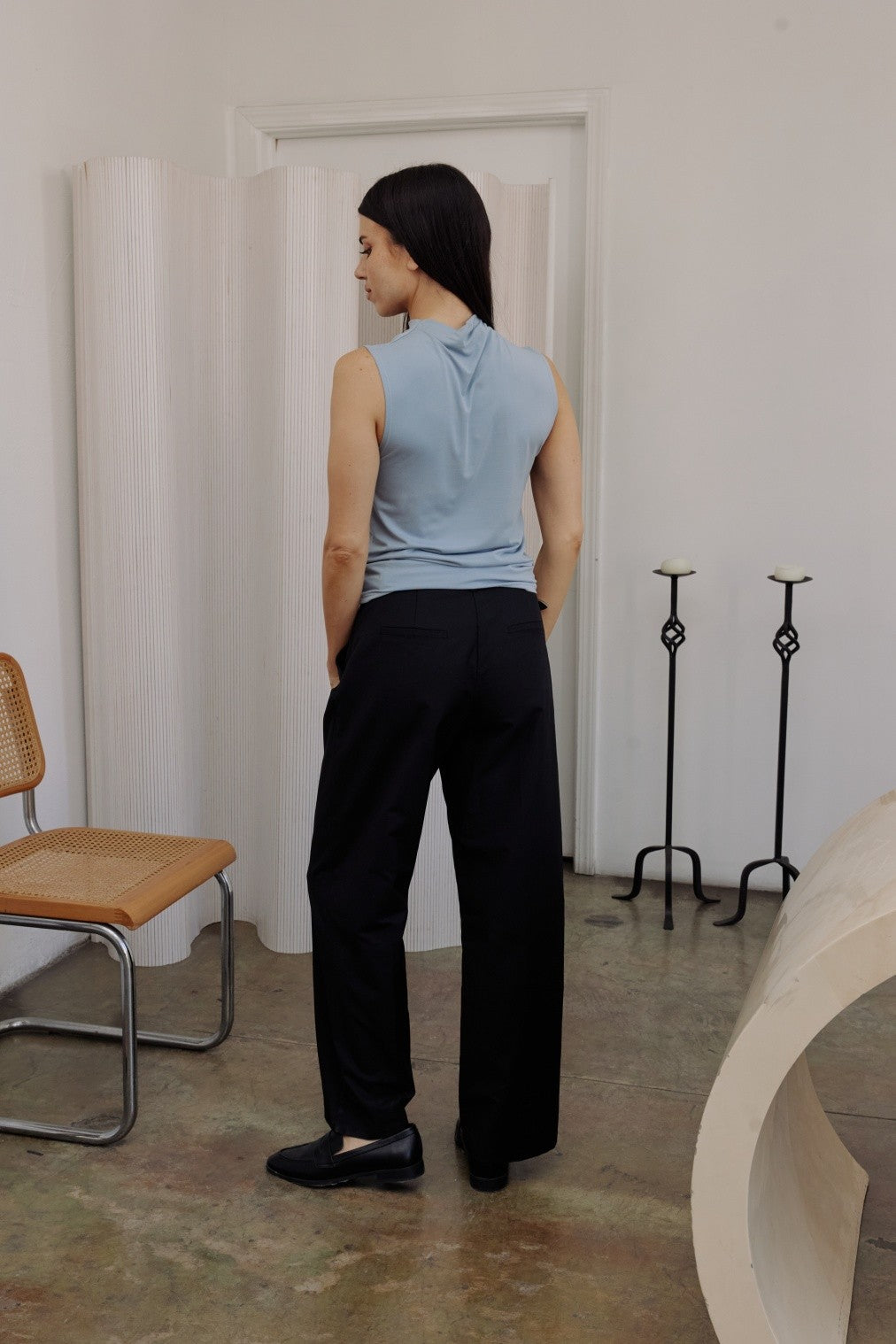 The Portia Top combines elegance with everyday comfort. Featuring a high neckline and distinctive pleated shoulders, its semi-fitted design enhances every silhouette. Made from a lightweight blend of modal, polyester, and spandex, this top feels soft and breathable, making it your go-to choice for effortless style all day long.